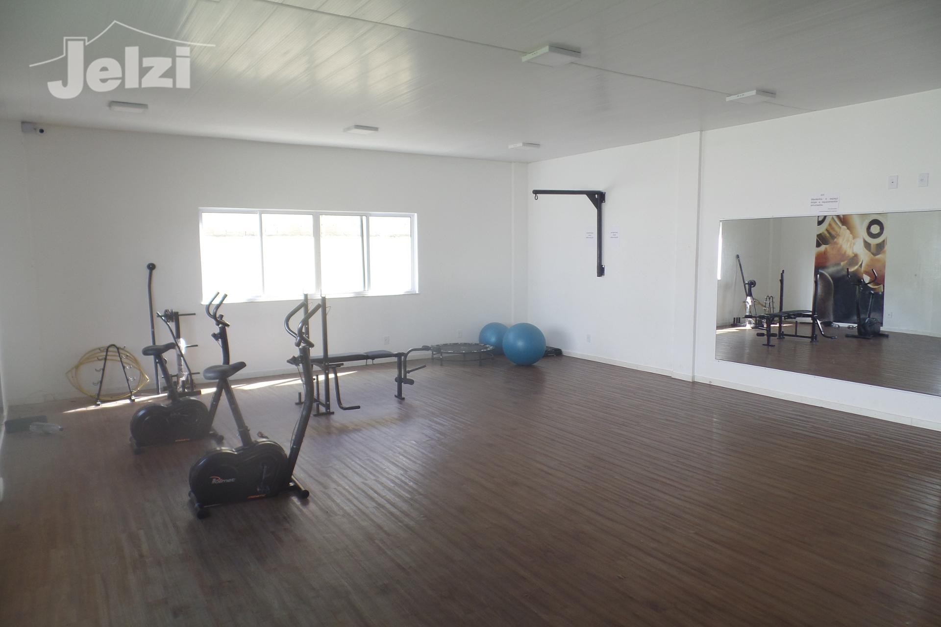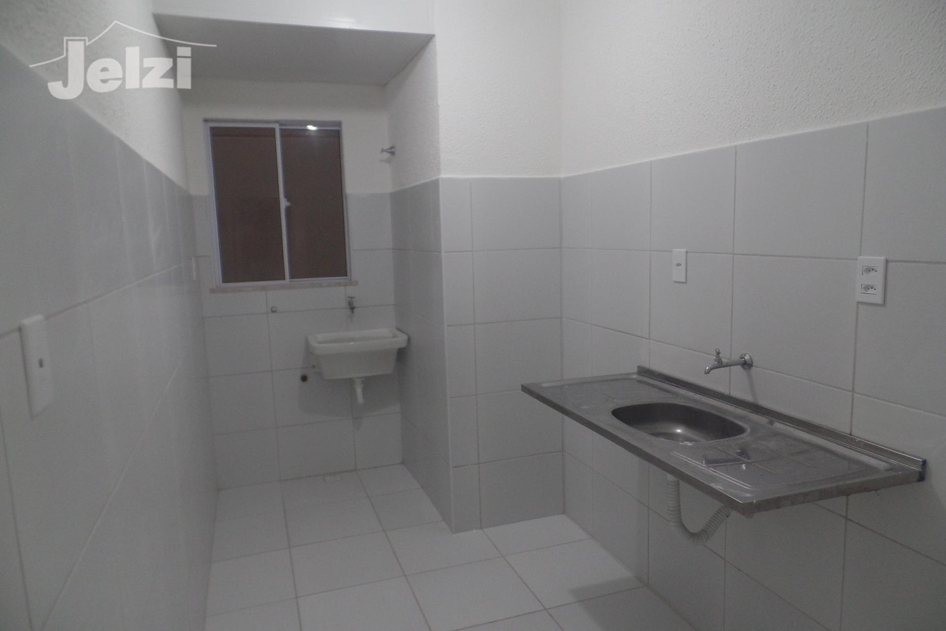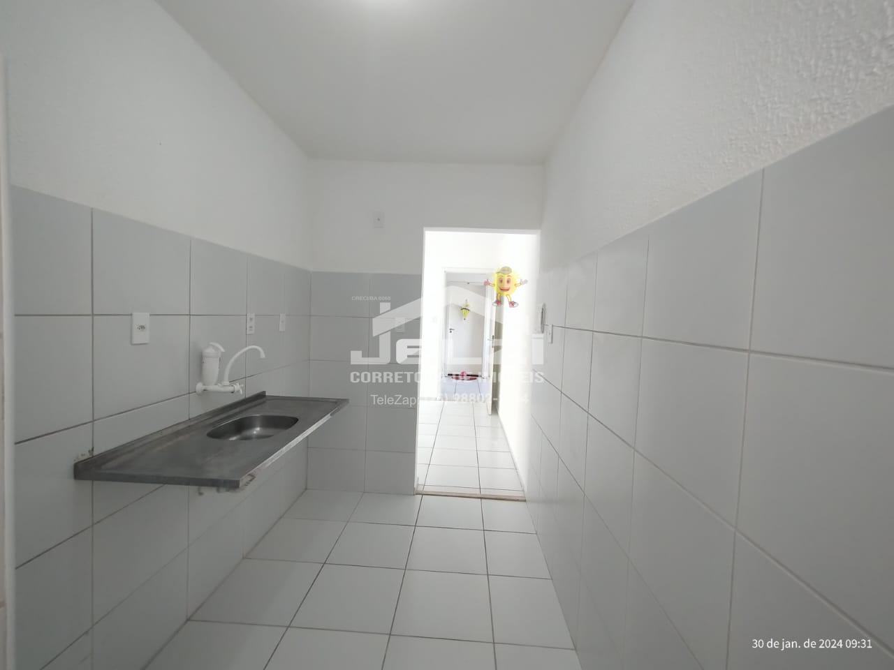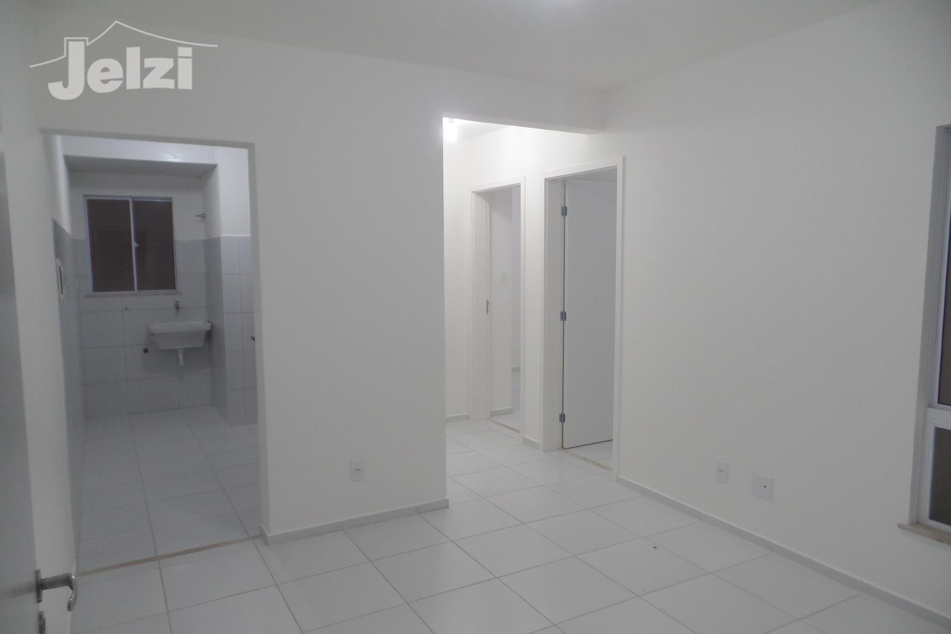 Dois quartos, sala, cozinha , um sanitário, área de serviço e uma vaga de estacionamento privativa coberta